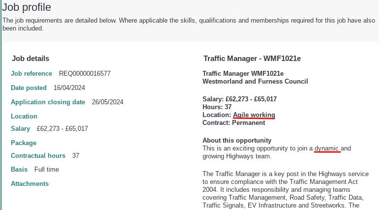 Which is why Wastemoreland & Farness Council is currently lusting after an “agile” traffic manager to join its “dynamic” Highways Department.