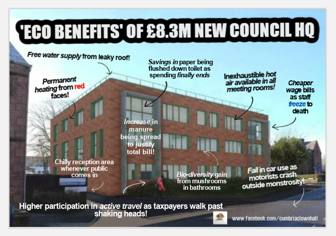 HAVING spent a grotesque £8.3m of public money building new net zero council offices for itself in Penrith, spin doctors at Westmorland and Furness Council have been crowing recently about how Voreda House there has won a new “energy efficiency” certificate.