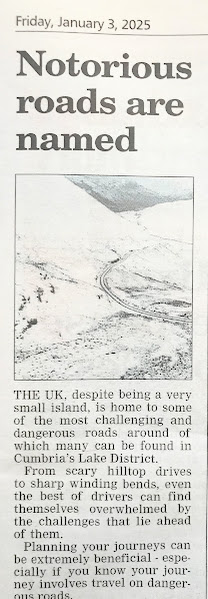 In its most recent January 3rd edition, the Carlisle weekly ran a shocky horror story on page 17 about the UK’s “most dangerous” roads.