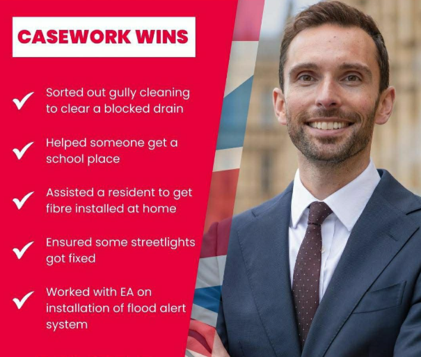 His stunning five results for West Cumbria include, er, sorting out a blocked drain, getting some street lights fixed, and helping someone get a school place.