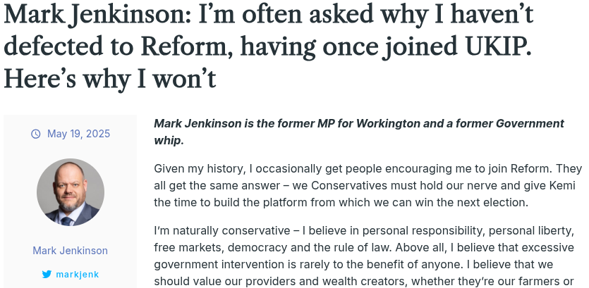 Read the full piece here: I’m often asked why I haven’t defected to Reform, having once joined UKIP. Here’s why I won’t.