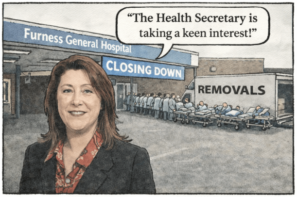 Scrogerm reports, breathlessly, that the Health Secretary is taking a “keen interest” in the slow death of Furness General Hospital; all under Labour’s watch, by the way!