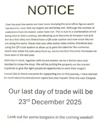 This week, the Imperilled clipped a post from Shap Village Store announcing it plans to close in December.