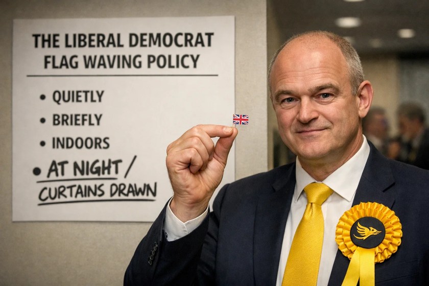 Despite two decades as MP for Wokemoreland & Loonsdale, he’s never felt the urge to strike this sort of patriotic pose before.