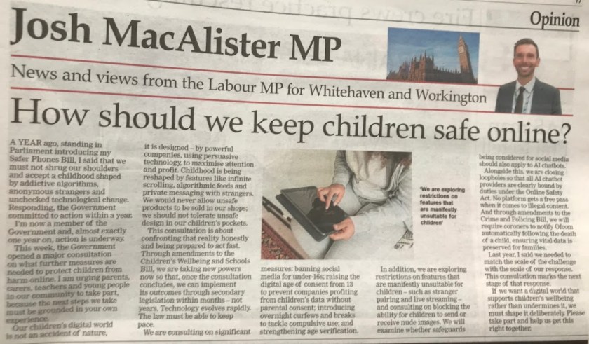 In his column in local Labour fanzine, the Times & Starmer, wonderboy insisted that the Government is “committed to action” on things like a ban on social media for U16s.