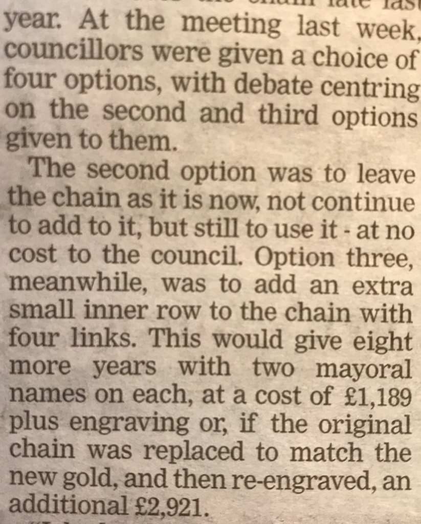 This trivial civic squabble – important only to those in the room when it was taking place – was whether more links should be added to the mayoral bling.