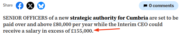To be fair, the Times & Starmer did at least report the ridiculous salaries agreed by the new Crumbria Combined Gravy Train, otherwise known as the Mayor’s Office.