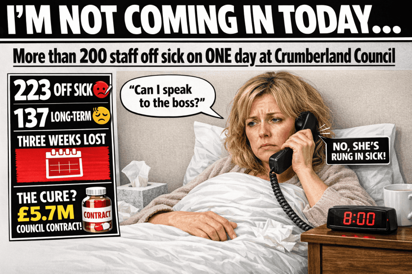 Yet few readers would know that Crumberland Council has needed successive multi-million pound government bailouts, had more than 200 staff off sick on a single day, and is throwing more than £5 million at a new firm to get on top of absences.
