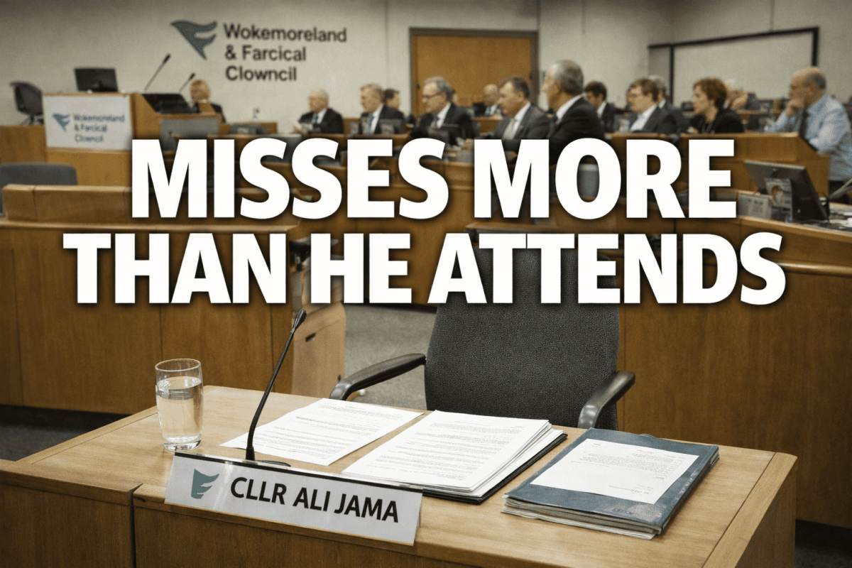Councillor Ali Jama, an independent councillor representing the Upper Kent near Kendal, was named in a Freedom of Information request as owing Wokemoreland & Farcical Clowncil £350 in Council Tax in March, according to reporting from Penrith Town News.
