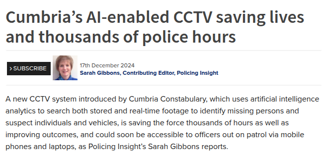 And on 17 December 2024, online mag, Policing Insight (below), was also praising the same technology in Cumbria.