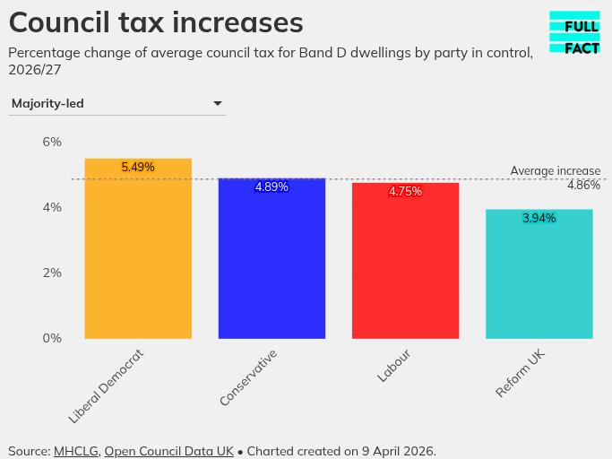 With a month to go before local elections elsewhere, meddling kids, Full Fact, the supposedly ‘independent’ fact-checking charity, rushed out an exclusive that Reform councils did not cut Council Tax — they increased it.
